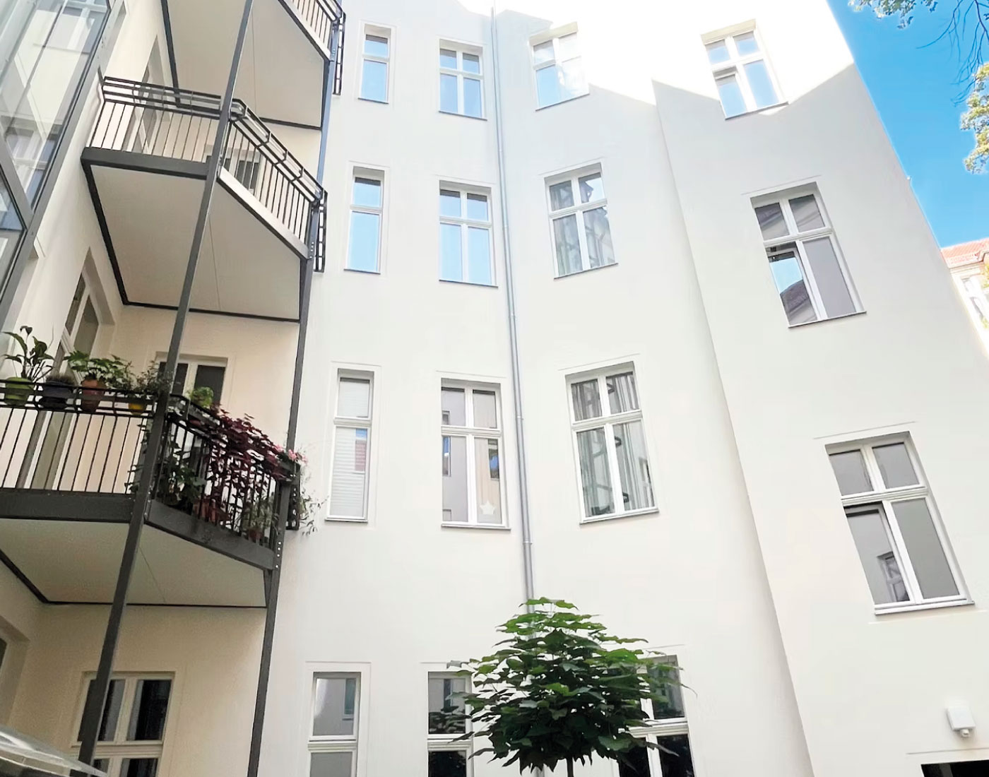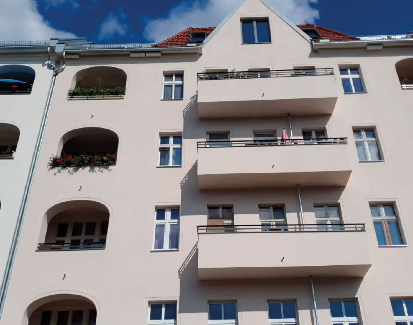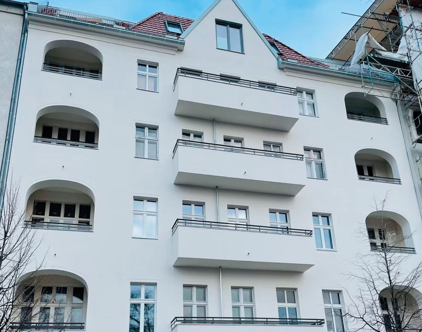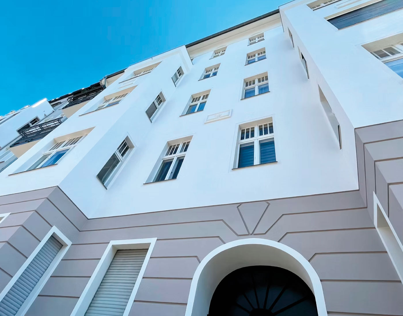Nach Abschluss der Arbeiten präsentiert sich die Fassade klar strukturiert, farblich ausgewogen und dauerhaft geschützt. Das Gebäude wirkt wieder hochwertig, gepflegt und fügt sich stimmig in das Kreuzberger Straßenbild ein.