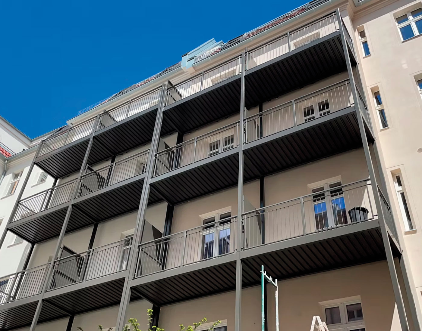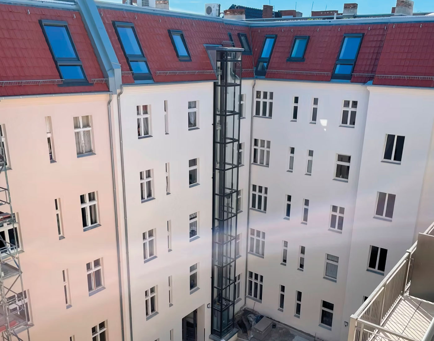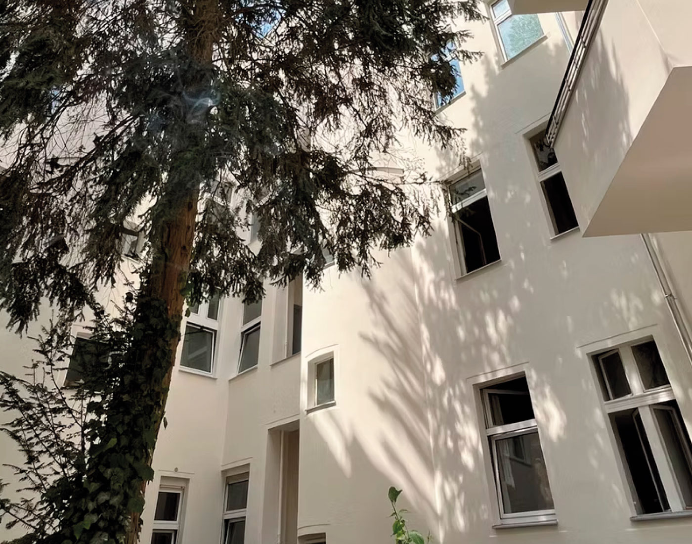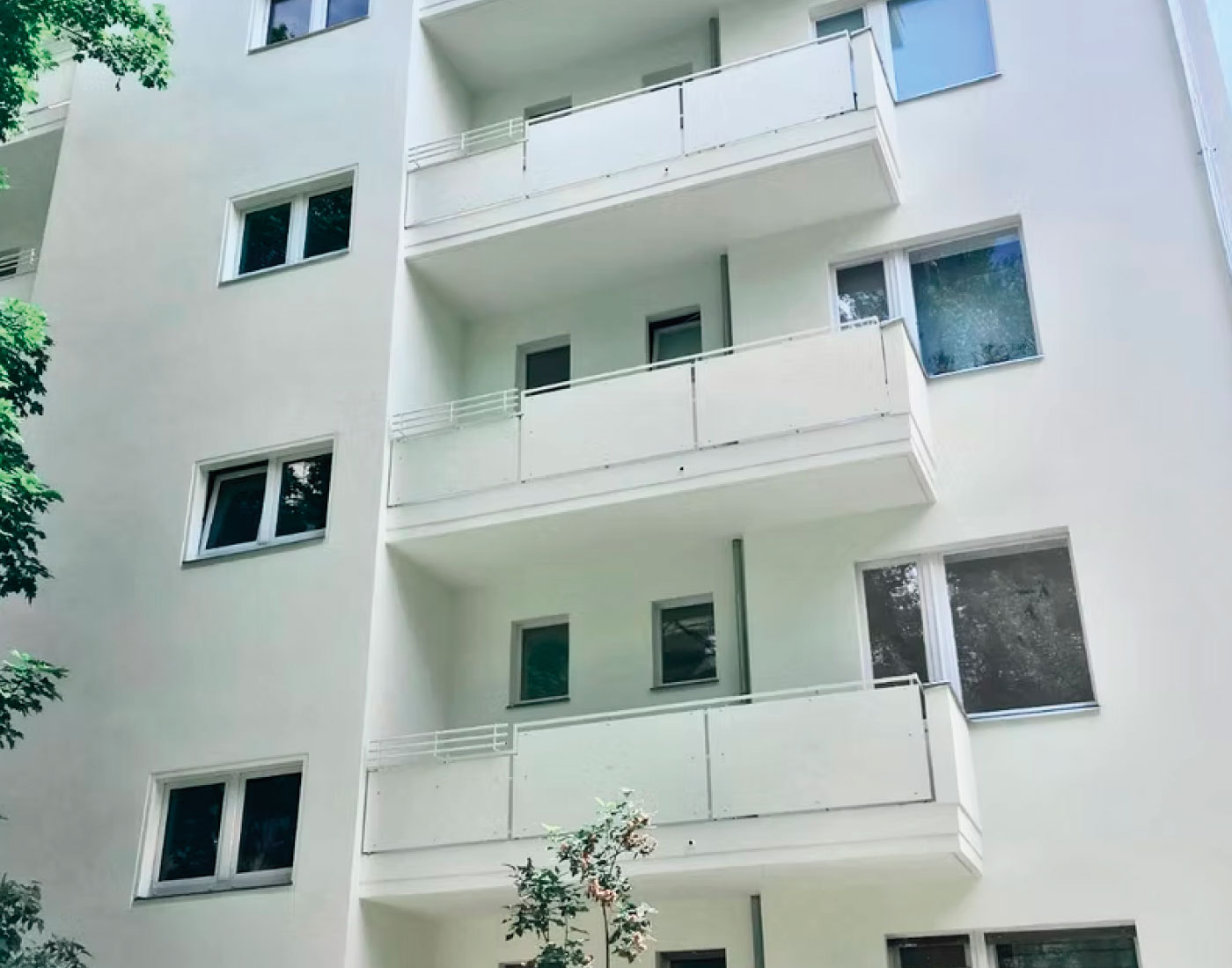 Die Fassade der Mariannenstraße 26 wurde umfassend saniert, um das Gebäude optisch zu beruhigen und technisch zu stärken. Nach der Reinigung und Ausbesserung der Oberflächen entstand ein ruhiges, modernes Fassadenbild, das die klare Linienführung betont und dem Objekt langfristige Stabilität sowie ein gepflegtes Erscheinungsbild verleiht.