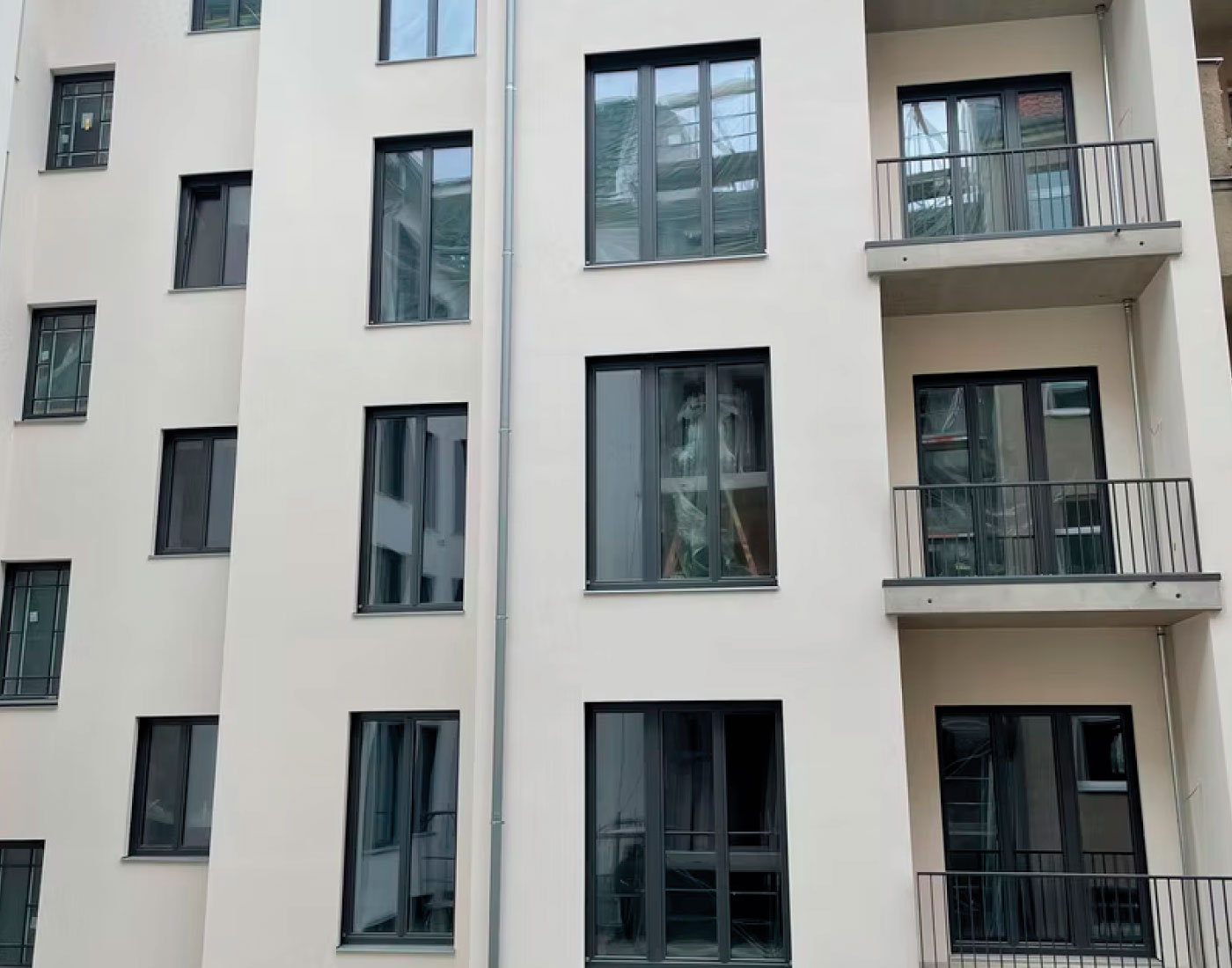 Die Fassade der Dickhardtstraße 48 wurde umfassend saniert, um das Gebäude optisch zu beruhigen und technisch zu stärken. Nach der Reinigung und Ausbesserung der Oberflächen entstand ein gleichmäßiges, modernes Fassadenbild, das die klare Linienführung betont und dem Objekt langfristige Stabilität sowie ein gepflegtes Erscheinungsbild verleiht.